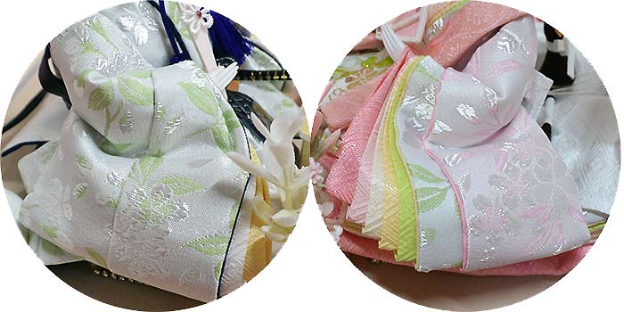 ◆男雛と女雛の衣裳は、お揃い柄の西陣織です。