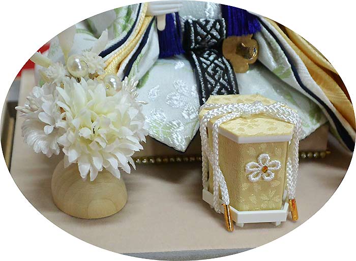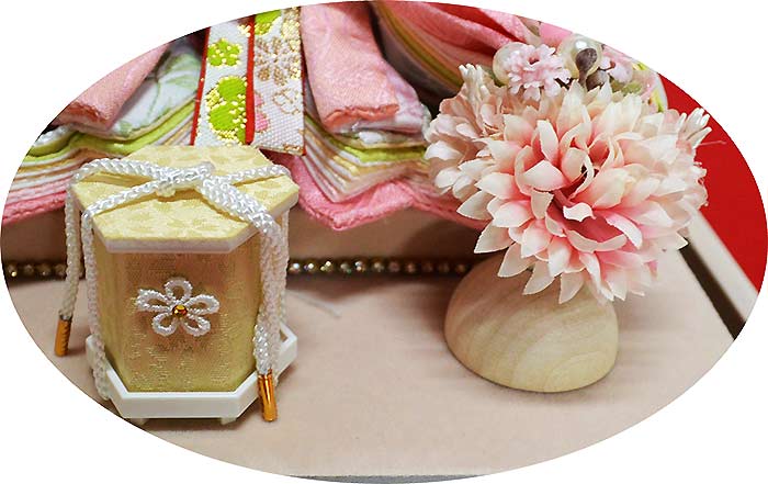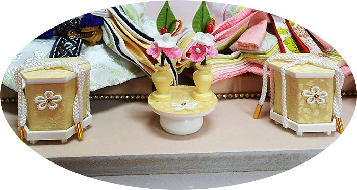 ◆付属のお雛道具と立花も、プリンセスに似合っています。