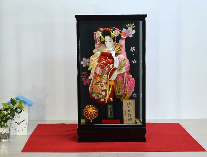 ◆金彩加工の袖と正絹シボリの振袖型の最高級品の羽子板飾りです。