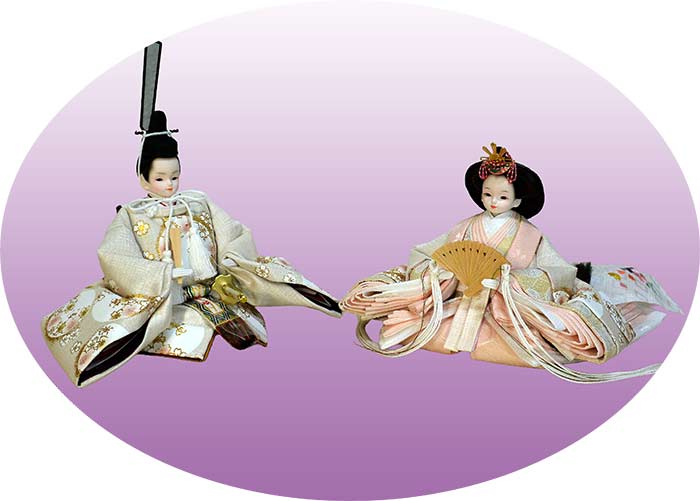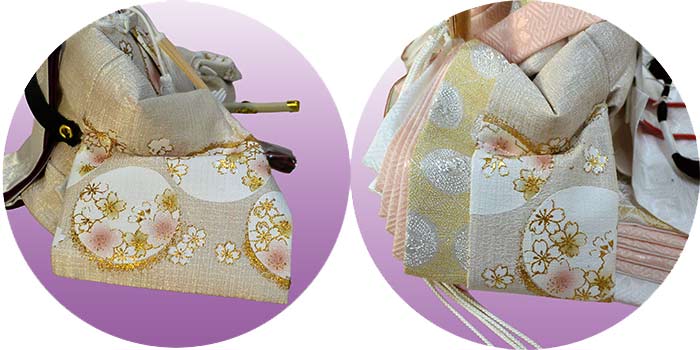 美しい刺繍仕立てのお揃い柄の衣裳です。女の衣裳も親王とお揃いの刺繍仕立てです