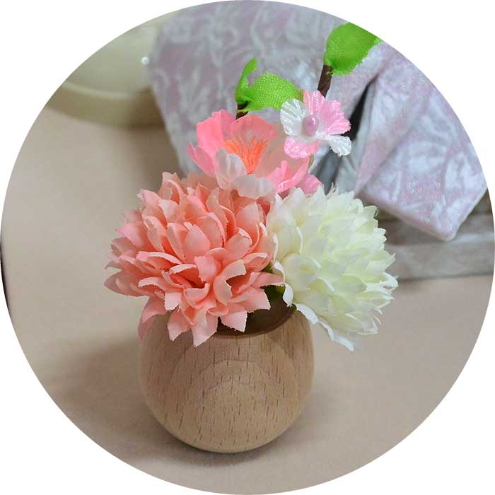 ◆プリンセス雛人形に似合った花飾りと前飾り。