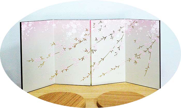 屏風の桜のデザインと収納箱の組み合わせが秀逸です。