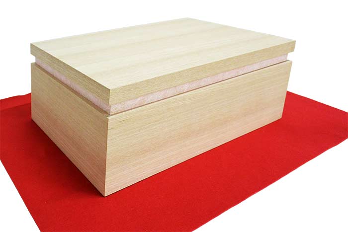 ピンクの桜が美しい屏風と家具調のタモ素材を使用した収納箱セット。