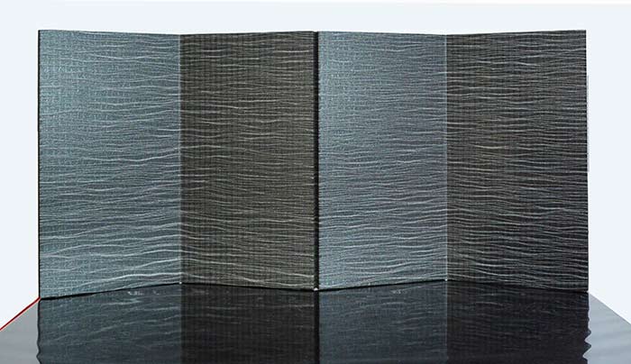 ◆SHIFUという和紙で織ったアパレル素材を使用した屏風。