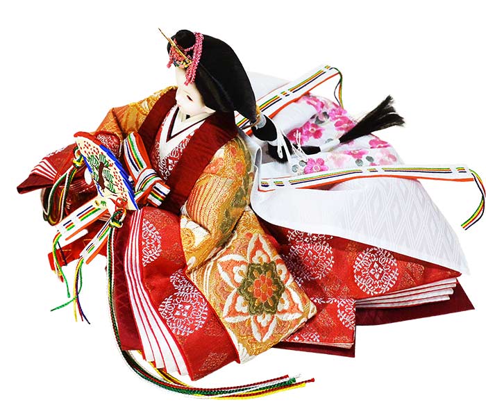 | 品名 | 正絹帯を使用したプリンセス雛人形 正絹帯地雛 絹ごろも 正絹佐賀錦 七宝に丸華(しっぽうにまるはな)かすみ収納セット<33-6700-701-1> |