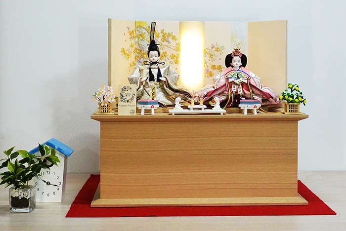 プリンセス雛人形にふさわしい前飾りと花飾りがセットされています。