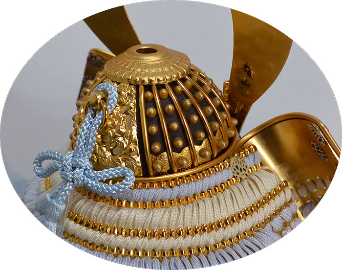 ◆合わせ鉢に金の覆輪つき、兜は正絹造りの鎌倉型の高級兜。