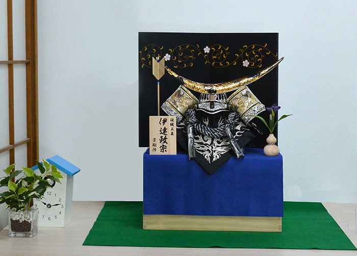 五月人形 兜飾り 正絹 伊達政宗の兜 桐箱収納セット(56-3300)