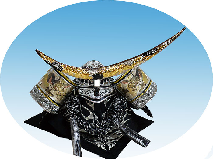 ◆三日月型の鍬形で有名な、伊達政宗公の兜飾りです。